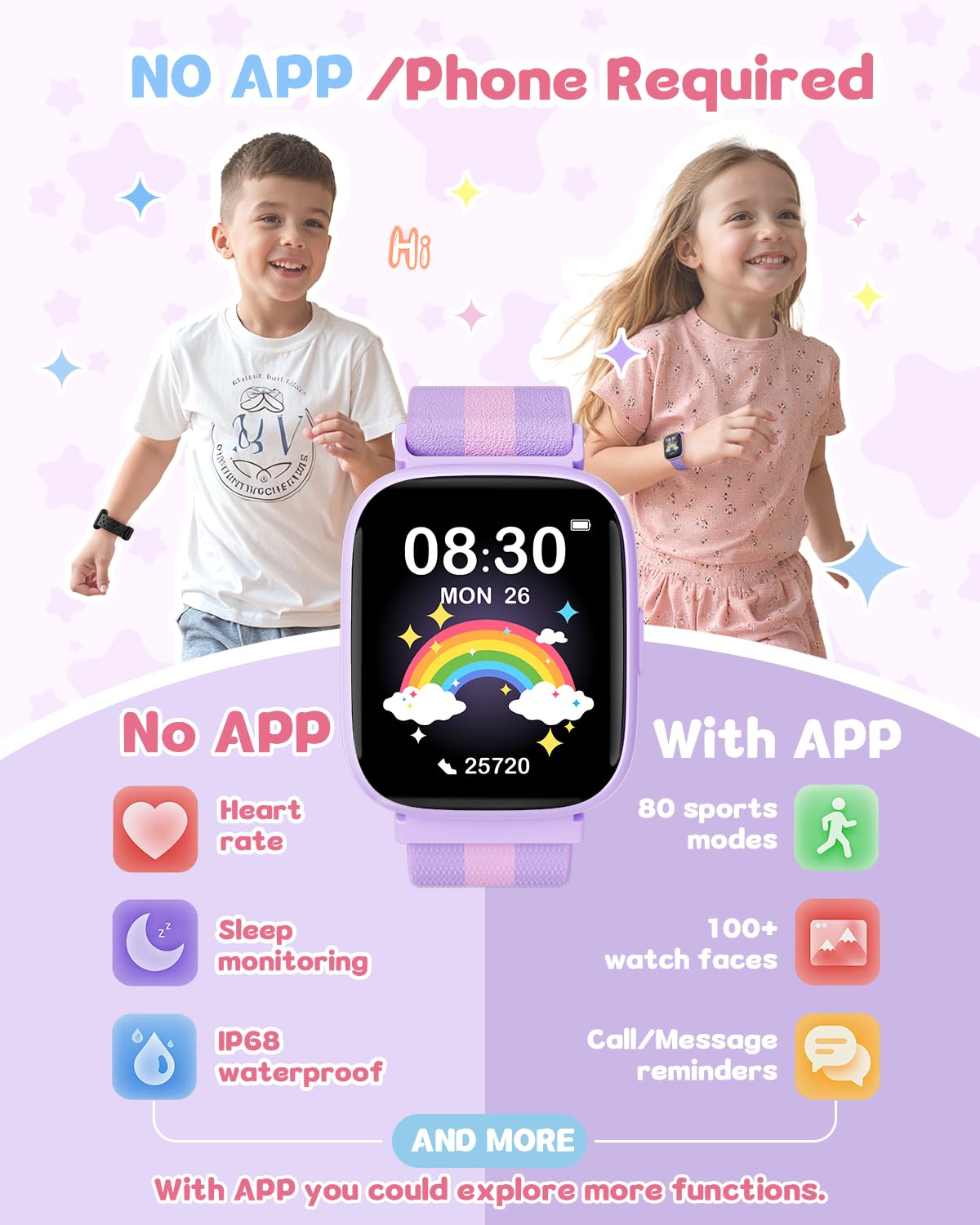 [Works With or Without an App]: Use the TICTIKY kids fitness tracker watch independently or connect it to the app for enhanced features. Compatible with Android 6.0+ and iOS 9.0+ smartphones, it offers flexibility for parents and kids alike.