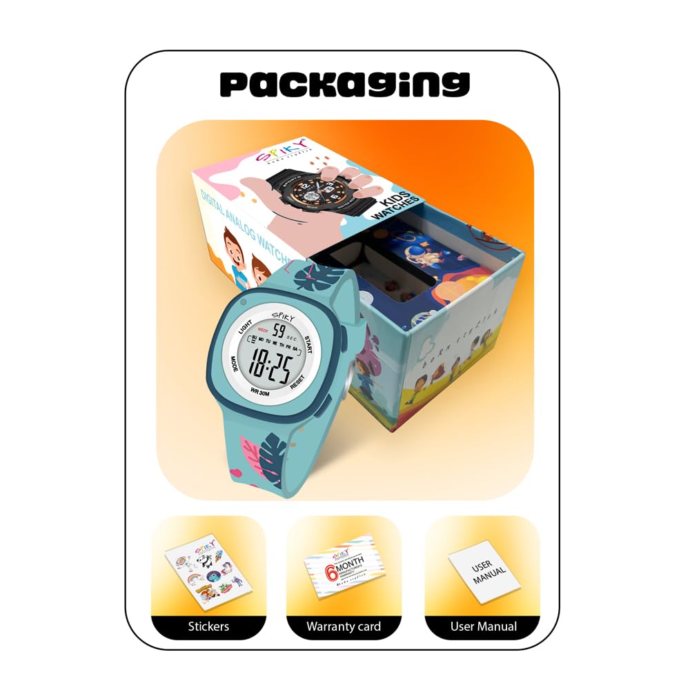SPIKY Digital Sports Watch for Kids | Multifunctional, Luminous Display, Alarm | Water Resistant & Printed Silicone Strap | Best Birthday Gift Wrist Watches for Girls & Boys | Age 2-14 yrs
