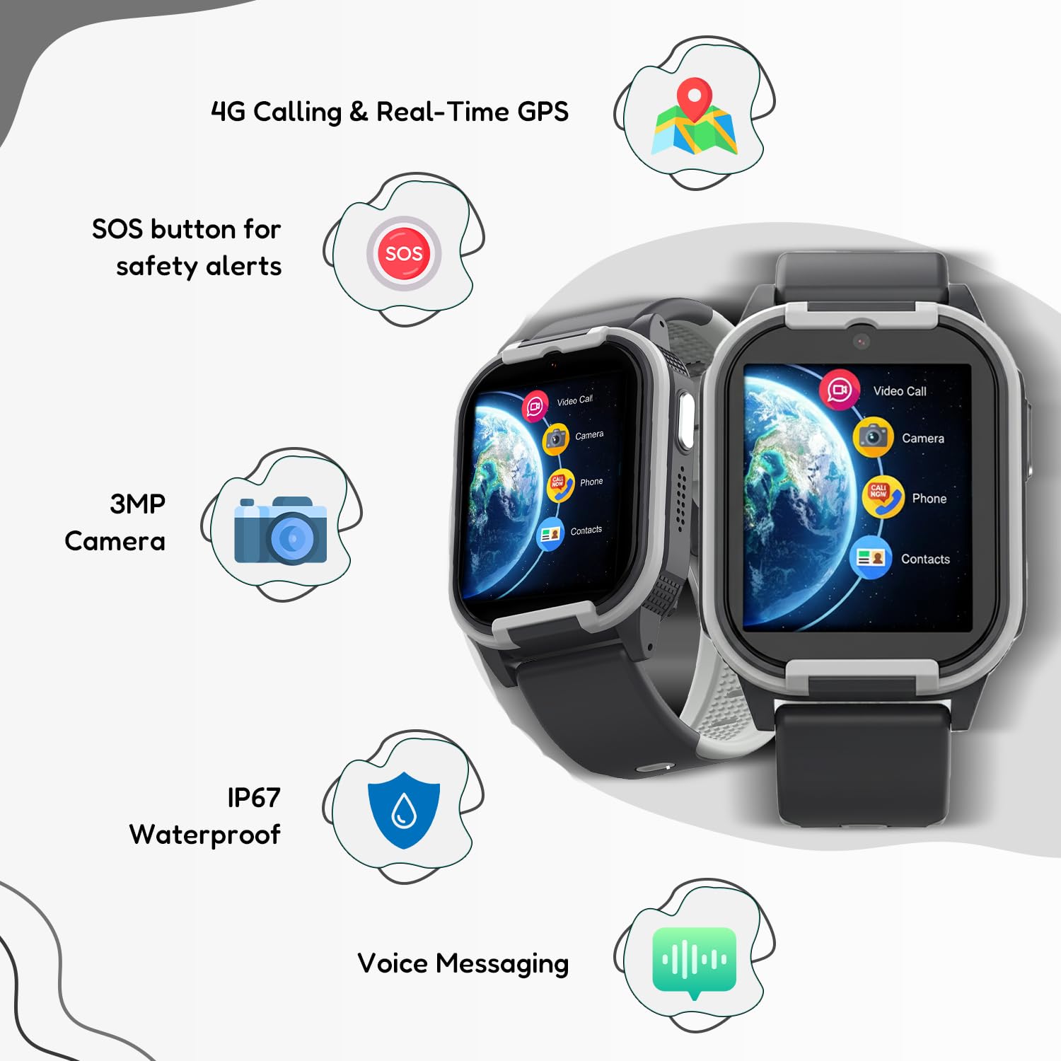 SPIKY Gnome Kids Smartwatch | with HD 4G Video & Voice Calling | IP67 Waterproof, GPS - LBS Tracking - WiFi, Geo Fencing, SOS Button | Best Smartwatch for Kids Boys & Girls