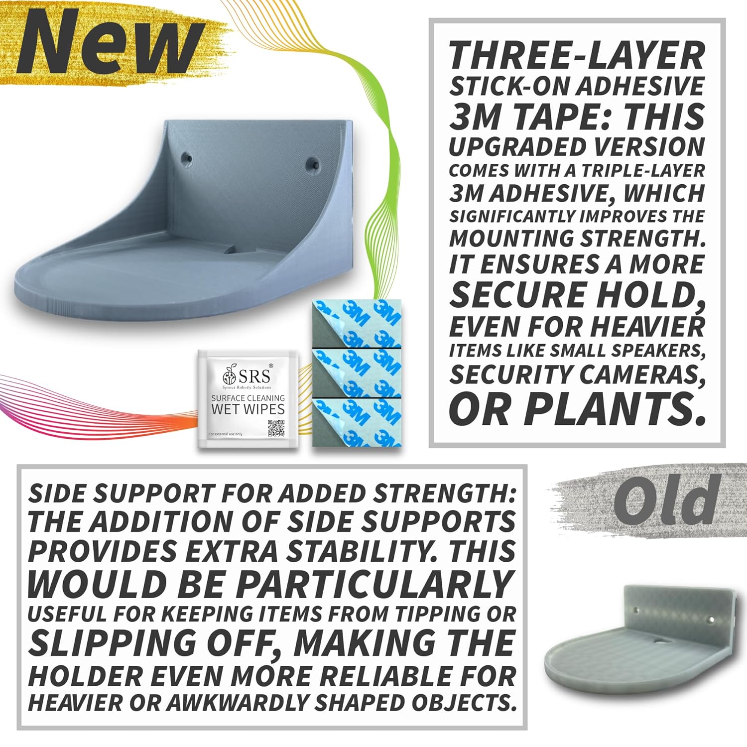 The SRS Amazon Echo Stand Holder is a versatile wall-mounted accessory designed to securely hold your Amazon Echo, security cameras, speakers, plants, toys, and more. This universal stick-on adhesive holder offers a space-saving solution for organizing various items in your home. Features: Universal Compatibility: Suitable for Amazon Echo, security cameras, speakers, plants, toys, and various other items. Space-Saving Design: Wall-mounted to free up shelf or counter space, keeping your home organized and clutter-free. Easy Installation: Stick-on adhesive allows for a hassle-free installation without the need for drilling or tools. Durable Material: Constructed from high-quality, water-resistant materials to ensure longevity and durability. Versatile Use: Perfect for various locations in your home, including living rooms, bedrooms, kitchens, and bathrooms. Convenient Access: Keeps your devices and items within easy reach, enhancing the functionality of your space. Installation Instructions: Clean the Surface: Ensure the wall surface is clean, dry, and free of dust and grease before installation. Peel the Adhesive: Remove the protective film from the adhesive pad on the back of the holder. Position and Press: Position the holder at the desired height and location, then firmly press it against the wall to secure it. Wait Before Use: Allow the adhesive to set for 24 hours before placing any items on the holder. Benefits: Organized Storage: Provides a designated spot for your Amazon Echo, security cameras, speakers, and other items, reducing clutter. Enhanced Durability: Resistant to moisture and humidity, ensuring the holder remains securely attached in various environments. Versatile Applications: Can be used in different rooms and for various purposes, from tech gadgets to decorative items. Improved Hygiene: Keeps items off surfaces that may collect dust or moisture, promoting better hygiene.