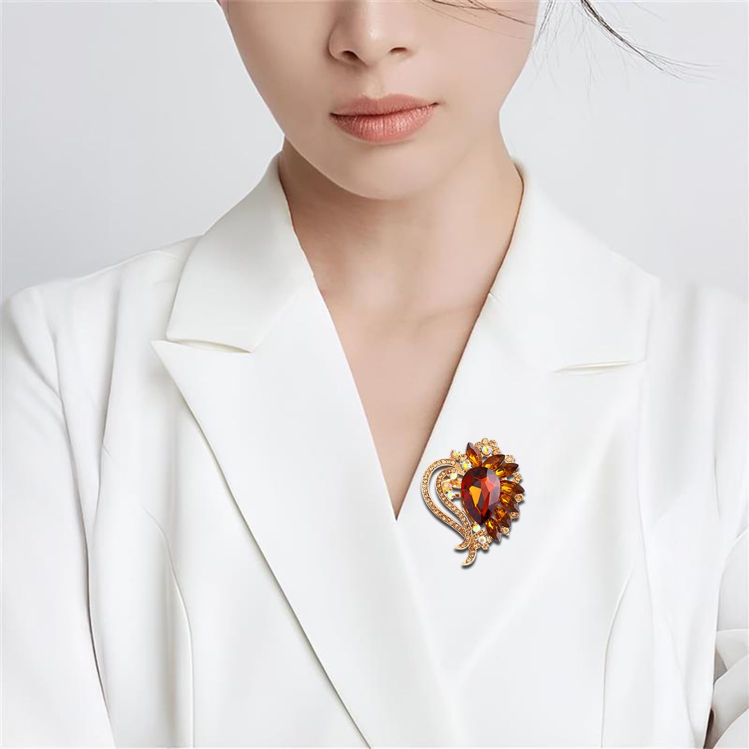 SYGA Women New Retro Heart-Shaped Crystal Glass Alloy Brooch Pin – Versatile Temperament Accessory for Outerwear