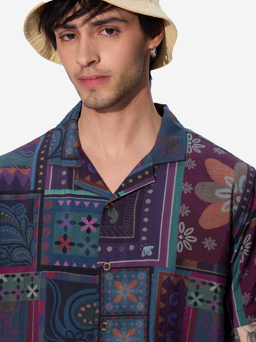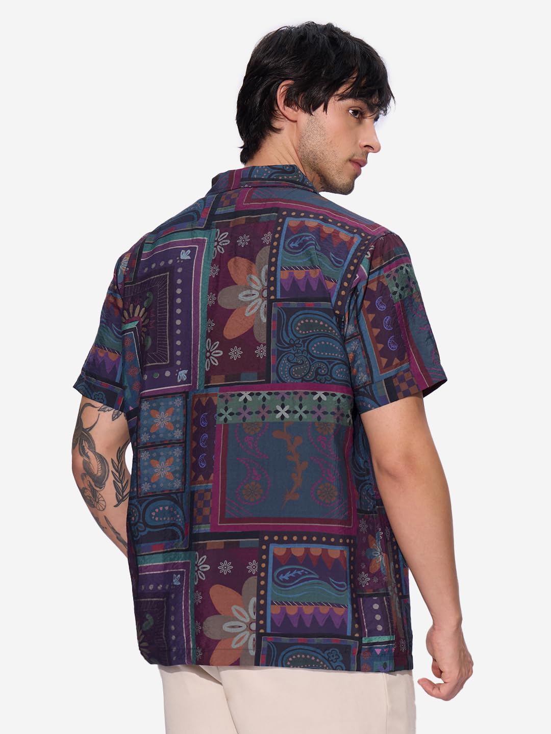 The Souled Store Dark Paisley Men and Boys Short Sleeves Collared Neck Button Front Regular Fit All Over Printed Rayon Blend Holiday Shirts