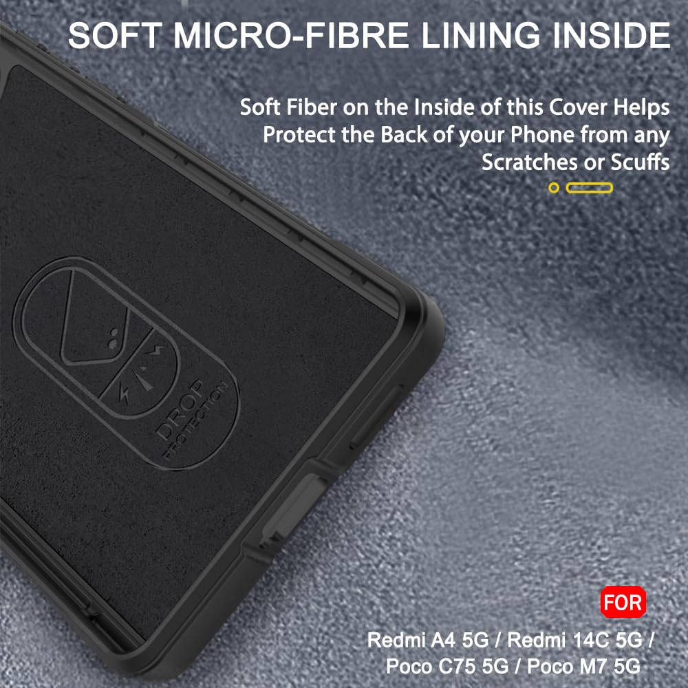 TheGiftKart Liquid Silicon Back Cover Case for Mi Redmi A4 5G / 14C 5G / Poco C75 5G / M7 5G | Shockproof Military Grade Protection | Micro-Fibre Cloth On Inner Side | Anti-Slip Grip Case