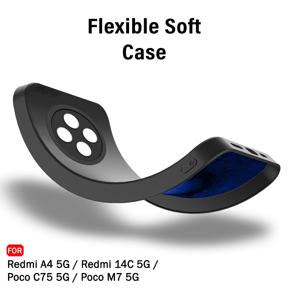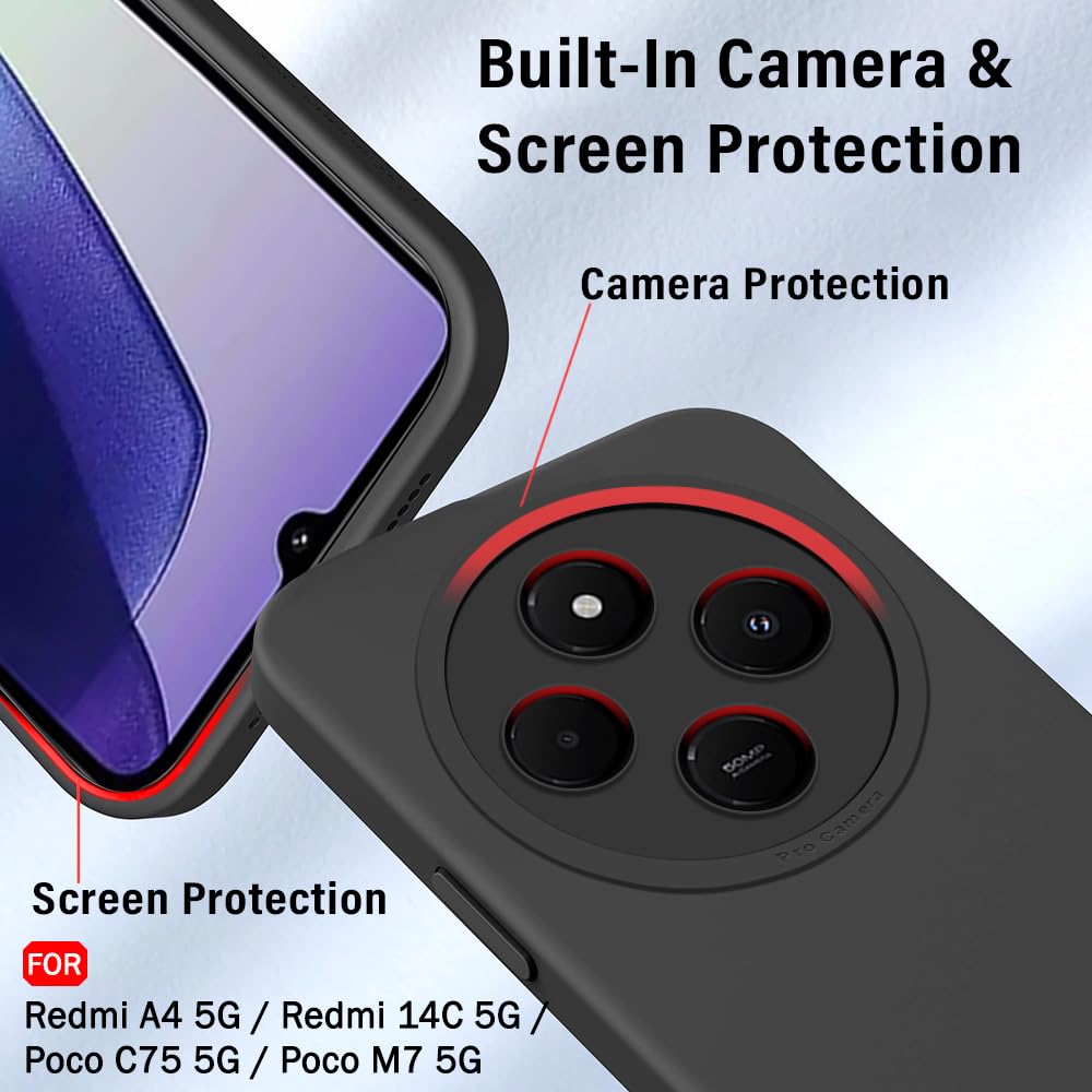 TheGiftKart Liquid Silicon Back Cover Case for Mi Redmi A4 5G / 14C 5G / Poco C75 5G / Poco M7 5G | Stylish Camera Protection Module | Micro-Fibre Lining Inside | Shockproof Cover (Silicone, Black)