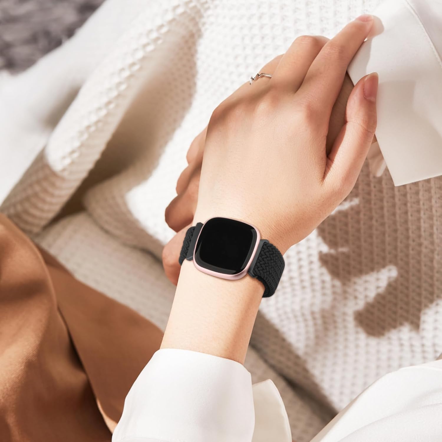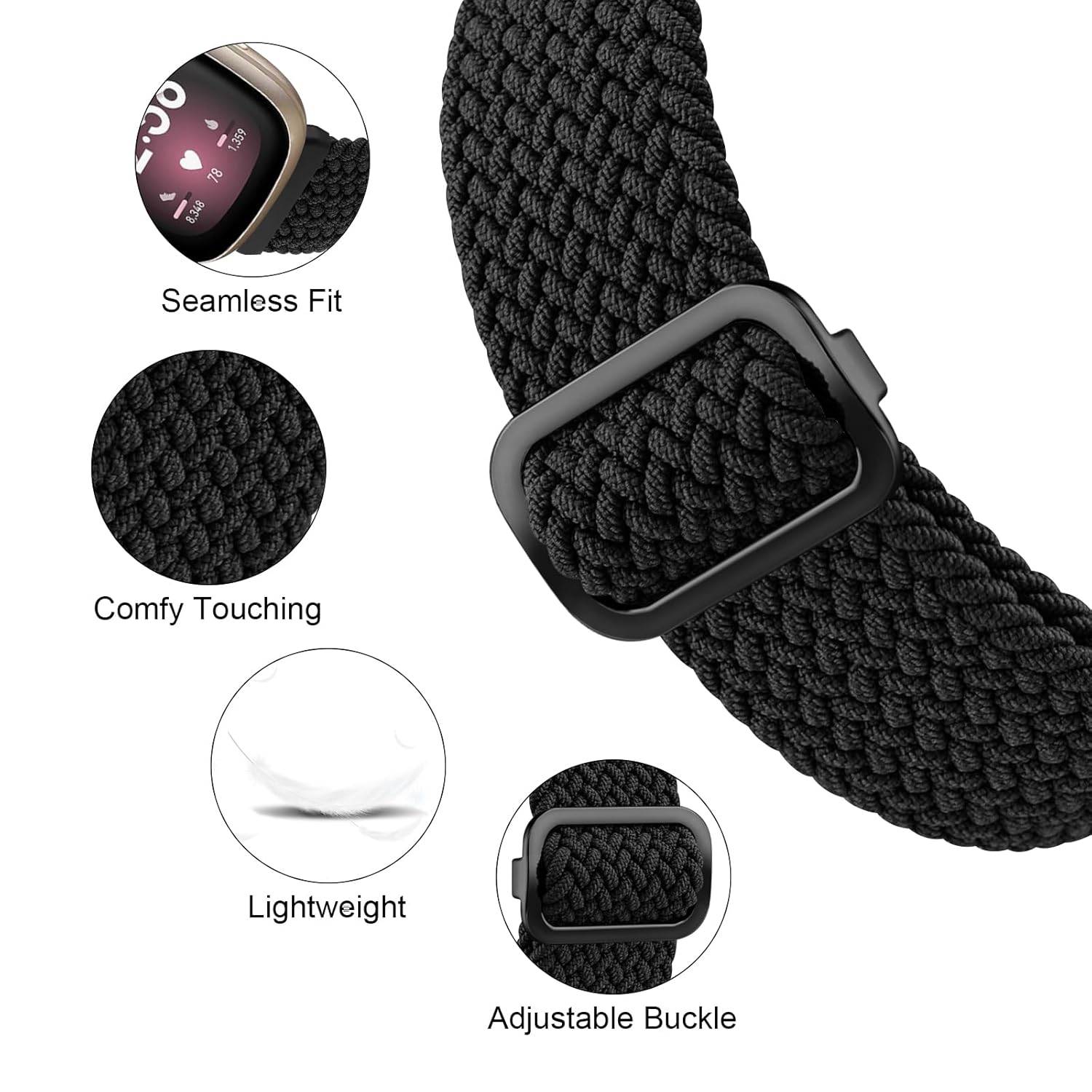 Tobfit Nylon Watch Straps for Fitbit Versa 4/Versa 3/Fitbit Sense 2/Sense Smart Watch(Watch Not Include), Braided Elastics Sport Watch Straps Adjustable Magnetic Buckle Band Women Men