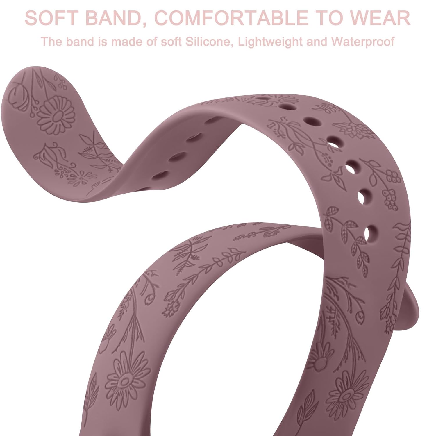 Tobfit Silicone Soft Floral Engraved Watch Band Strap Compatible for Samsung Galaxy Watch 4/4 Classic (Watch Not Included), 20mm Smartwatch Straps with Rust Free Button for Men & Women (Smokey Mauve)