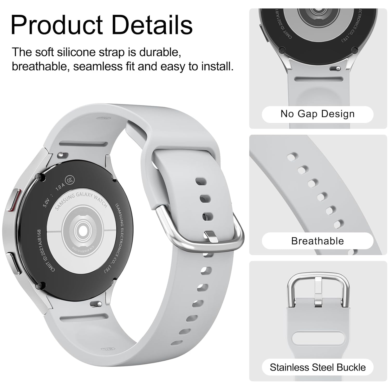 Tobfit Straps Compatible with Samsung Galaxy Watch 7/6/5/4 Strap 40mm 44mm,20mm Adjustable Original Style Silicone Sport Replacement for Samsung Galaxy Watch 7/6/5/4 Women Men
