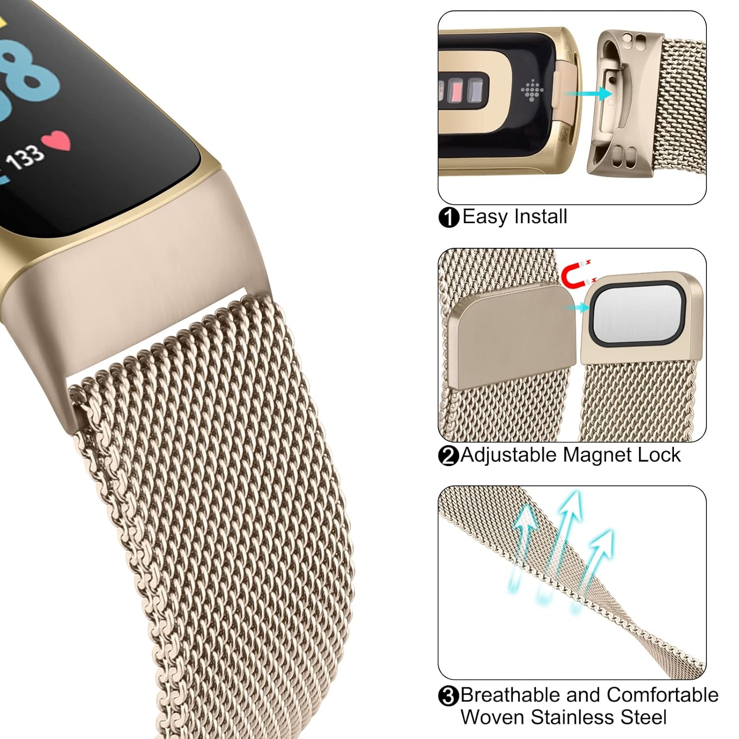 Made from premium stainless steel metal material, the sleek Smart Watch mesh loop band is sturdy, rustproof, fade-proof and easy to maintain. It is the best companion for daily and outdoor sports such as running and swimming, a great affordable option for your fitbit Sense watch accessories.