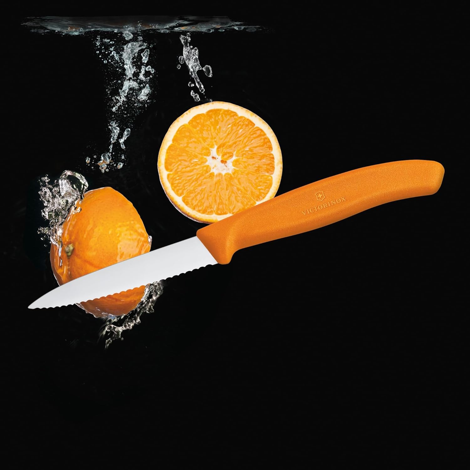 Victorinox, Swiss Classic Kitchen Knife/PARING Knife/Vegetable Knife, 8 cm, Wavy Edge - Orange Colour.