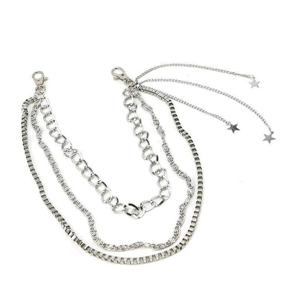 High quality materials: sturdy and durable, not easy to rust, suitable for most people. You can hang this chain on jeans, pants, or skirts as a decoration to create your coolest look. Fine workmanship, beautiful appearance, smooth polishing, not easy to break or damage, not easy to fade after long-term use, reusable and durable.Material: Metal Size: free sizeEasy to Decorate: Suitable for most women and men; they are easy to use and help keep wallets or keys from falling out of pockets. Cool Design: These wallet chains help to easily attach keys, wallets or other small accessories with eyelets to the belt loops, you can also hang these chains on your jeans or trousers as a decoration for a cool look. A great choice for dancers, rock music, punk, hip hop lovers, especially for stage performances to create cool effects. Package Included: 1x Pants Chain.