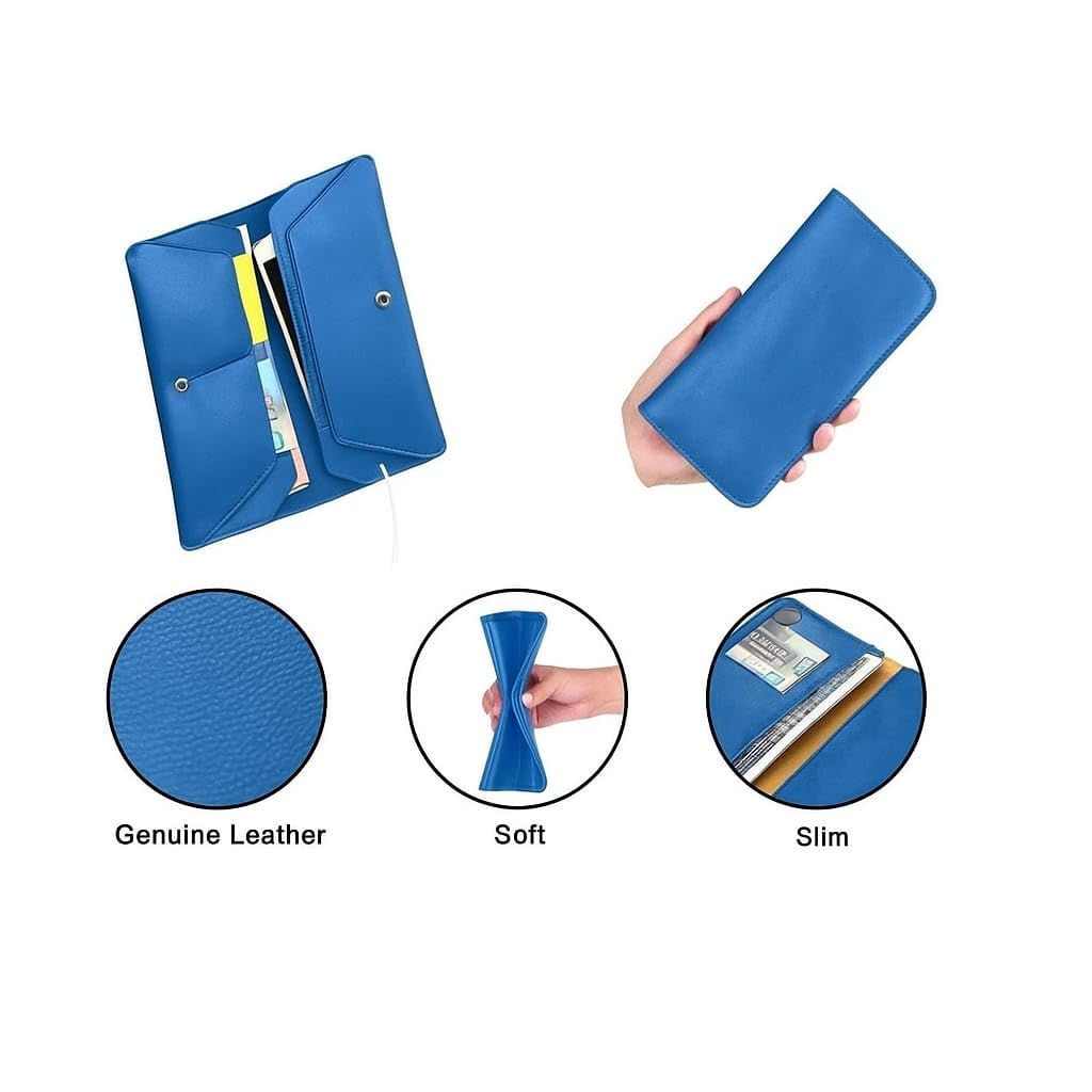 * The Blue Premium Leather Pouch Case, New Fashion Luxury Wallet Pouch | Dual Layer Dual Phone Storage And Multi Card Slot Wallet Case | It Functions Just Like a Wallet, Business And Travel Both Suitable.