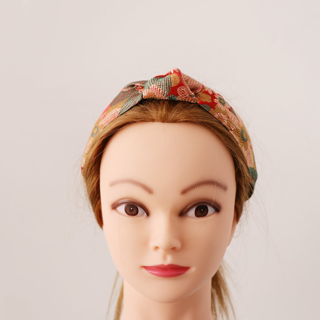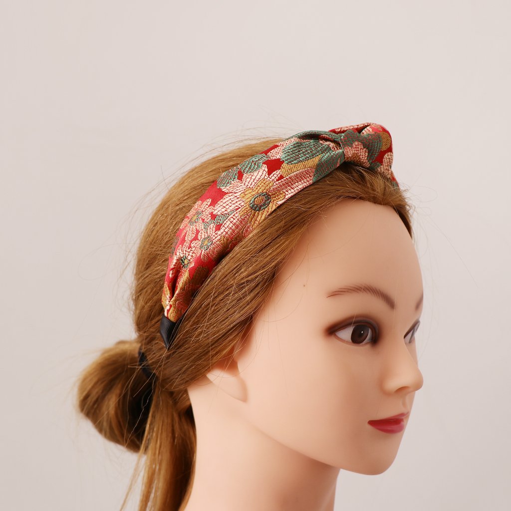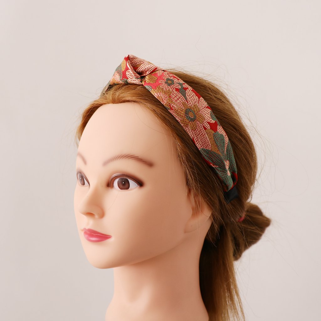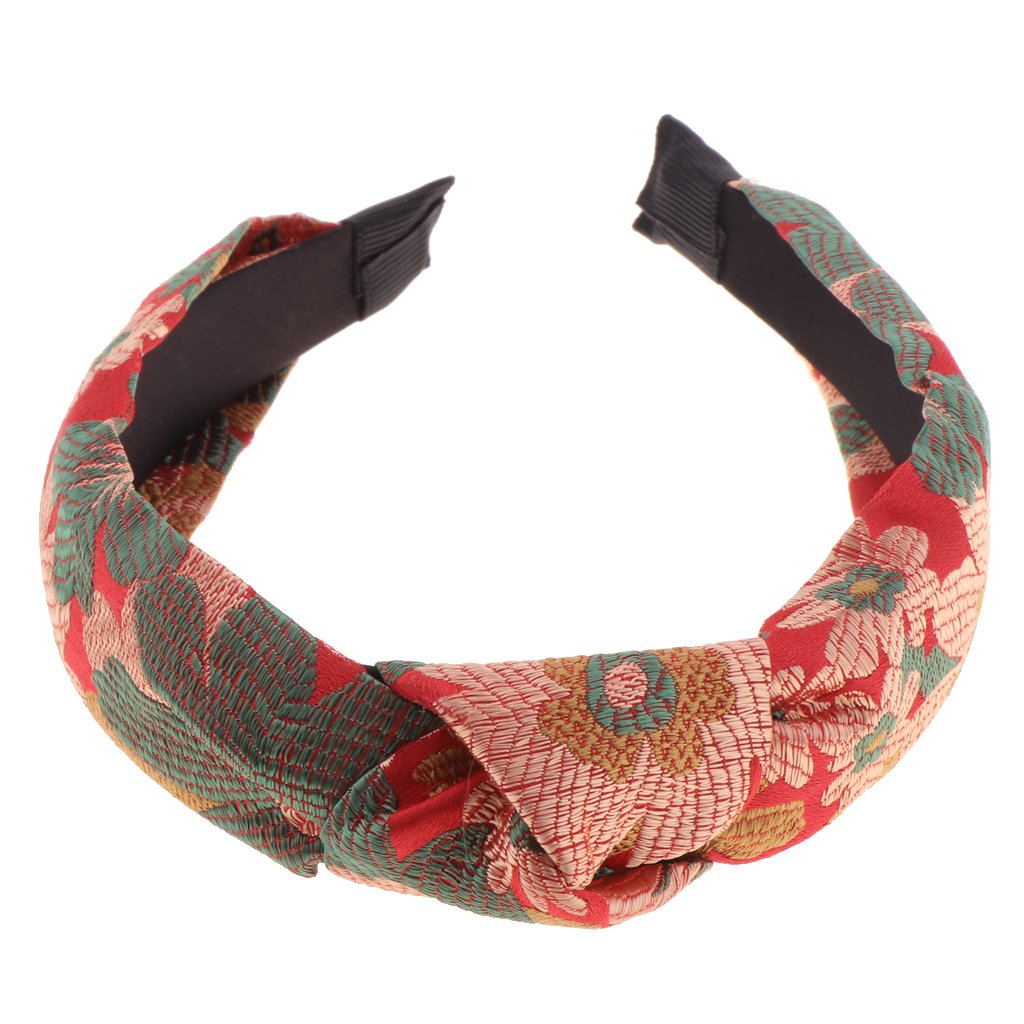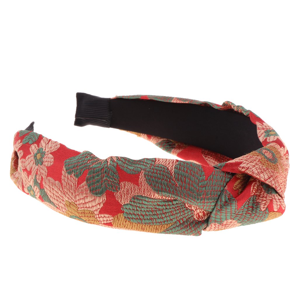 Flower Wide Embroidery Knotted Headband Turban Headwrap For Women