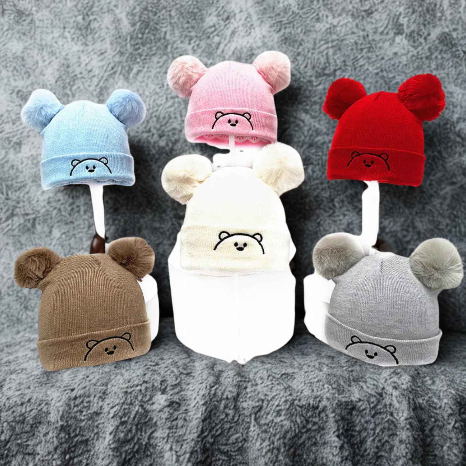 Woolen Warm Double Pom Pom Beanie Hat for Baby Boys Girls Toddler Winter Knit Cap Soft Cute Cozy Hat for Kids Age 1-4 Years Outdoor Cold Weather
