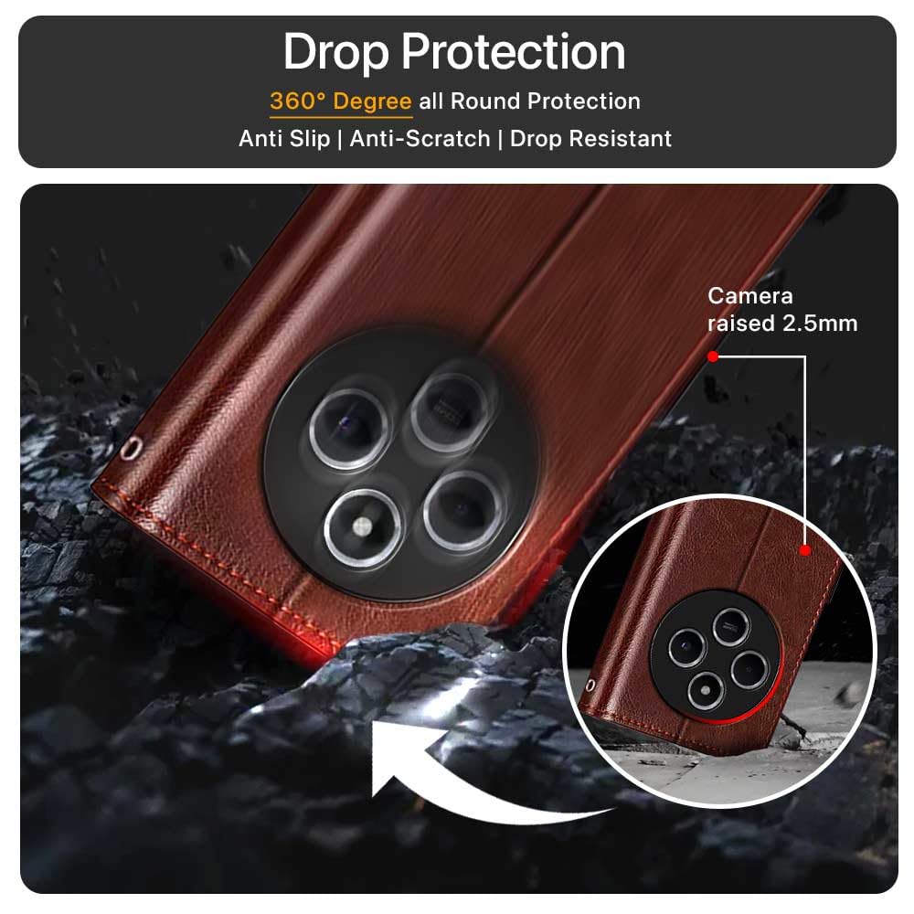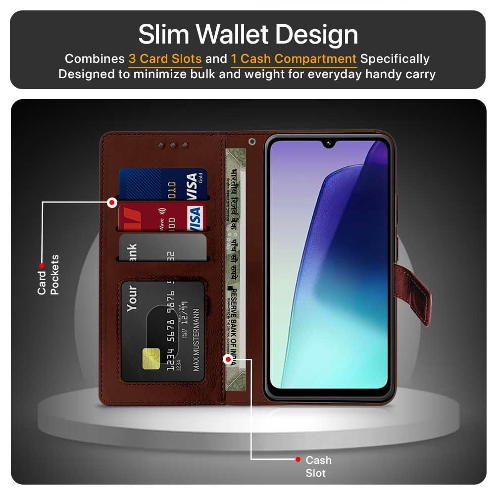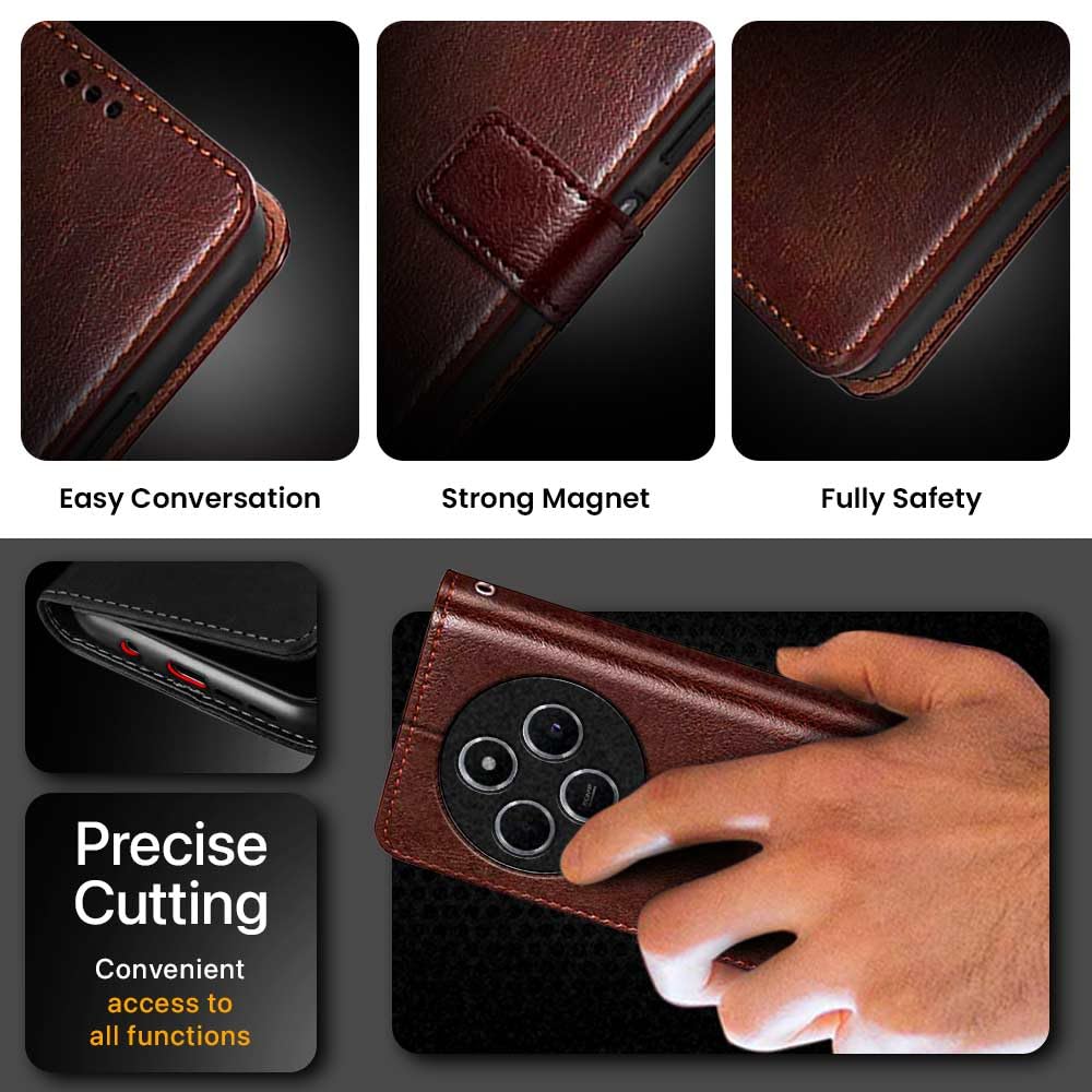 WOW IMAGINE Shock Proof Flip Cover Back Case Cover for Redmi A4 5G | Poco C75 5G | 14C 5G | Poco M7 (Flexible | Leather Finish | Card Pockets Wallet & Stand | Chestnut Brown)