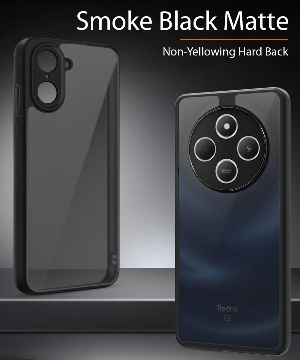 WOW IMAGINE Translucent Hybrid Back Case Cover for Redmi A4 5G | Poco C75 5G | Redmi 14C 5G Smoked Matte Back | Shock Proof 360 Degree Protection | Protective Hard Case – Matte Black