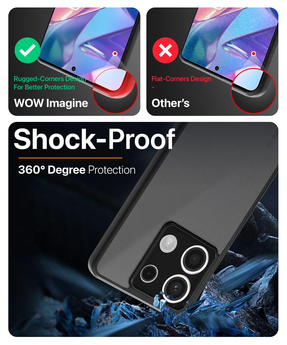 WOW IMAGINE Translucent Hybrid Back Case Cover for Xiaomi Mi Redmi Note 13 5G Smoked Matte Back | Shock Proof 360 Degree Protection | Protective Hard Case – Matte Black