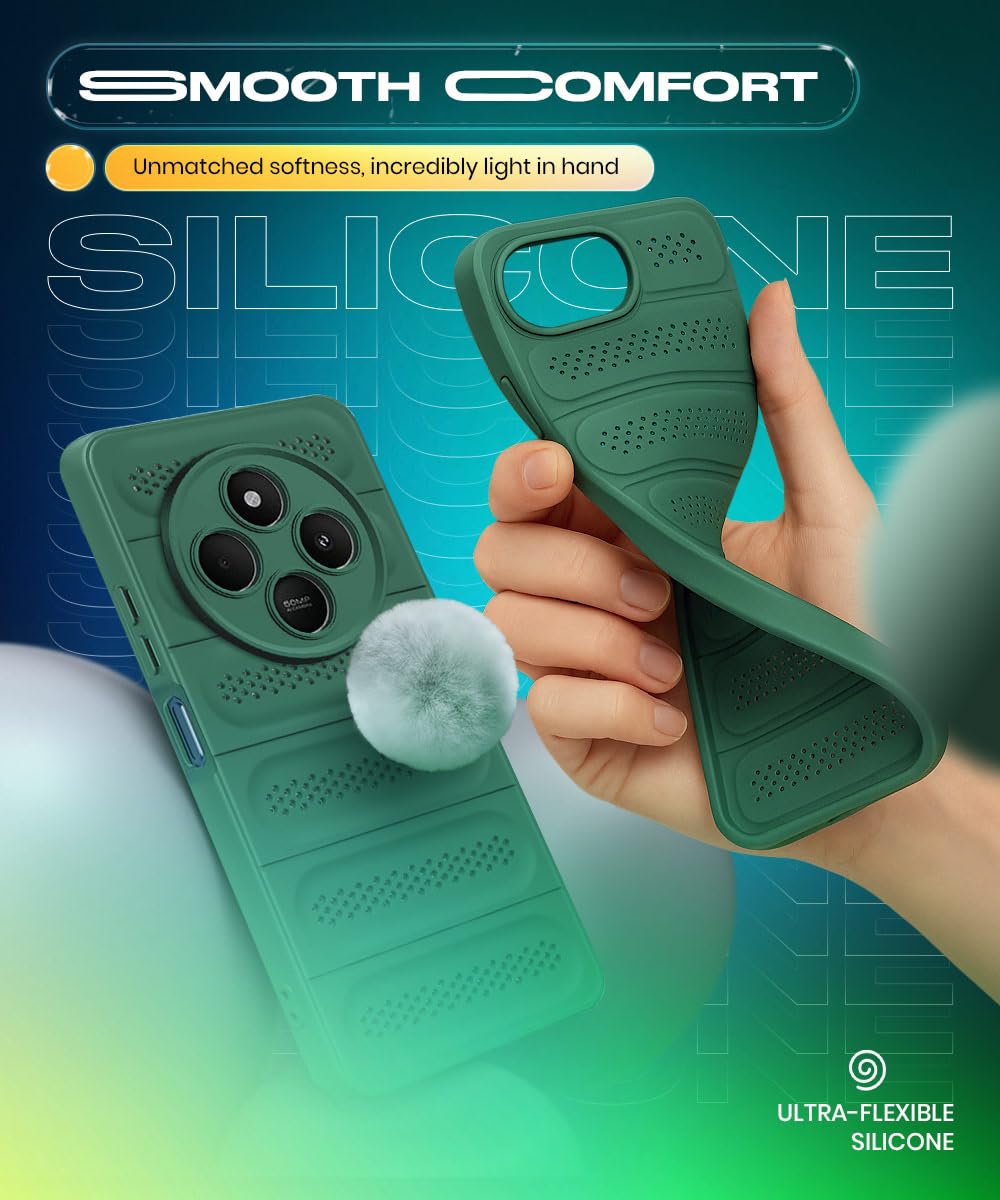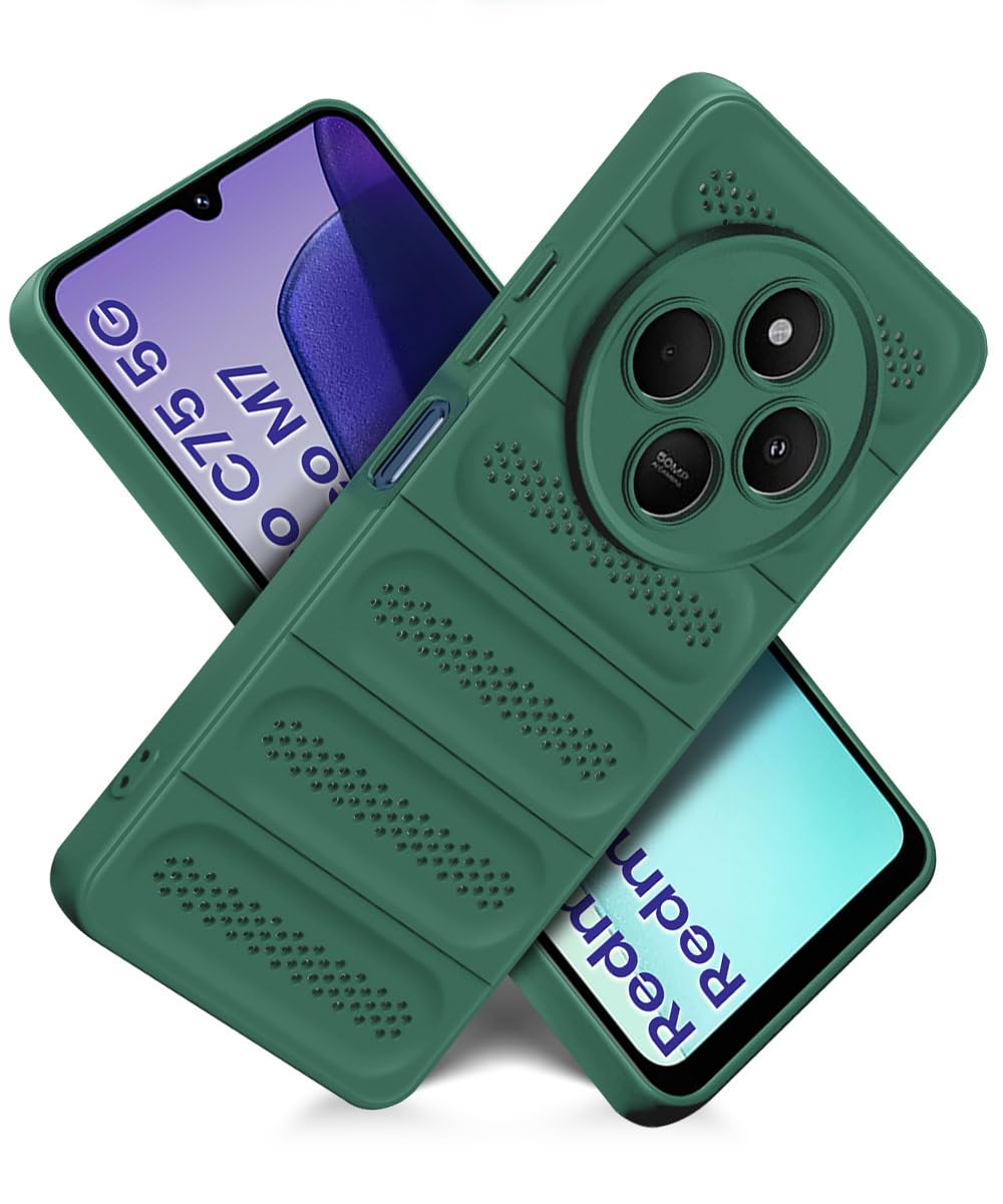 WOW IMAGINE Ultimate Silicone Back Cover Case for Redmi A4 5G | Poco C75 5G | 14C 5G | Poco M7 | Heat Dissipation Thin Soft TPU | 360° Camera Protection | Breathable Cooling Holes – Forest Green