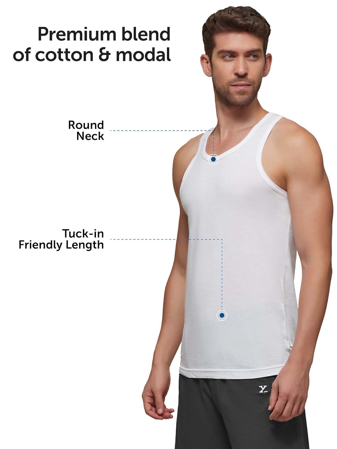 XYXX Men's Ace Cotton Modal Regular Fit Solid Round Neck Vest (Pack of 2)| Antimicrobial, Breathable, Ultralight Vest