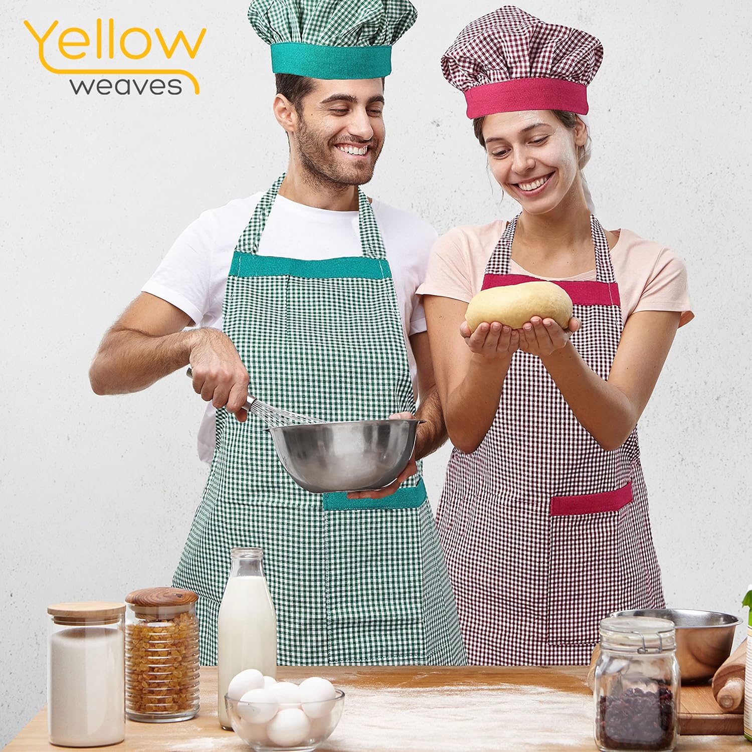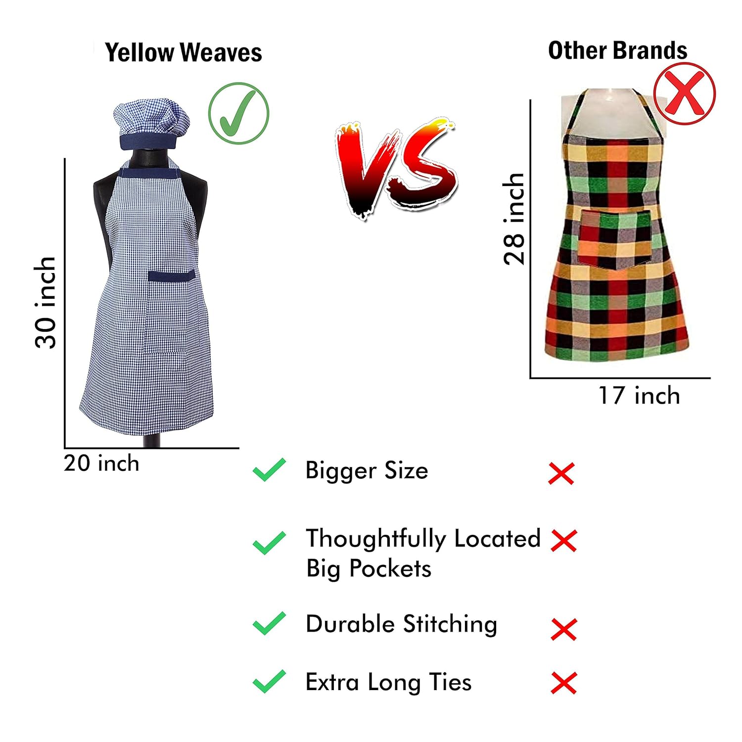 Yellow Weaves™ Cotton Kitchen Apron With Cap Combo Set of 3 - Multi