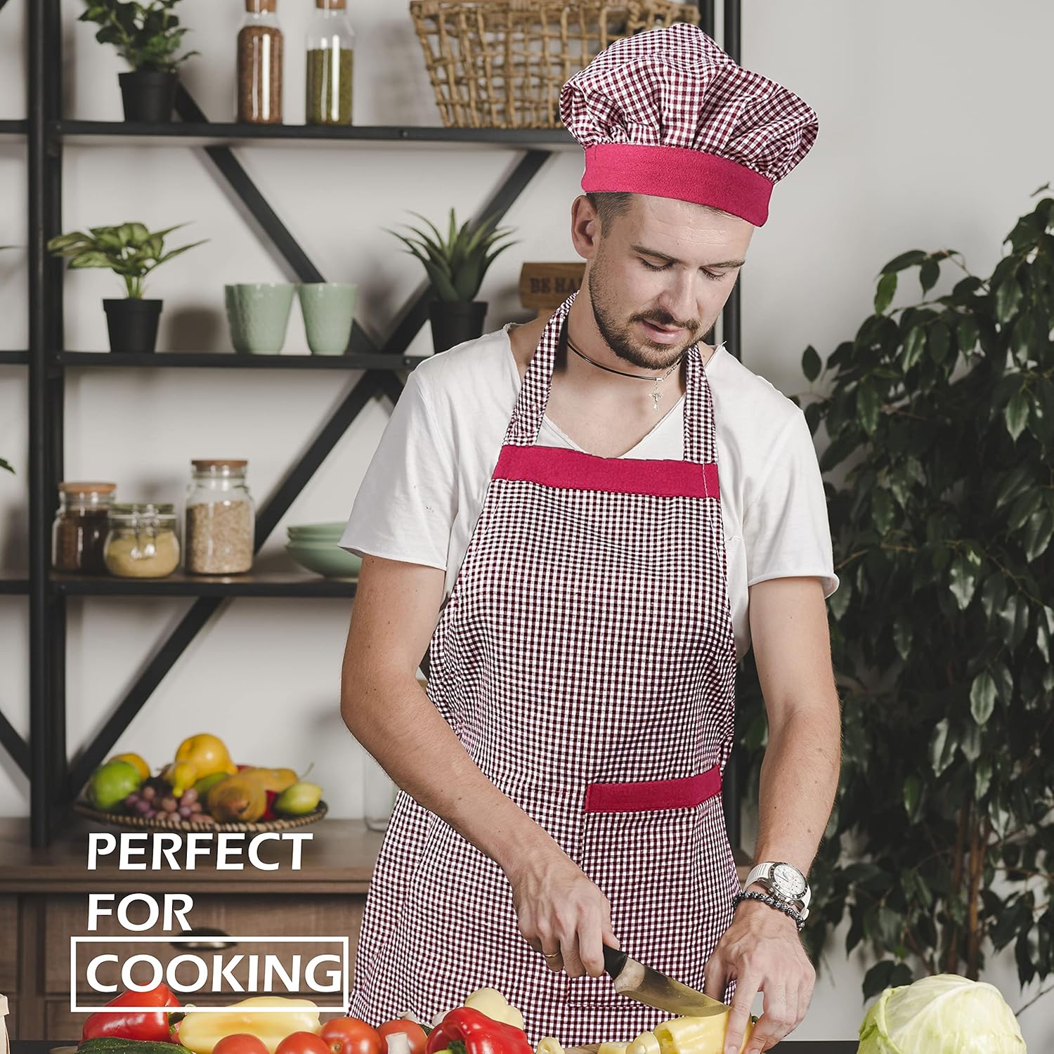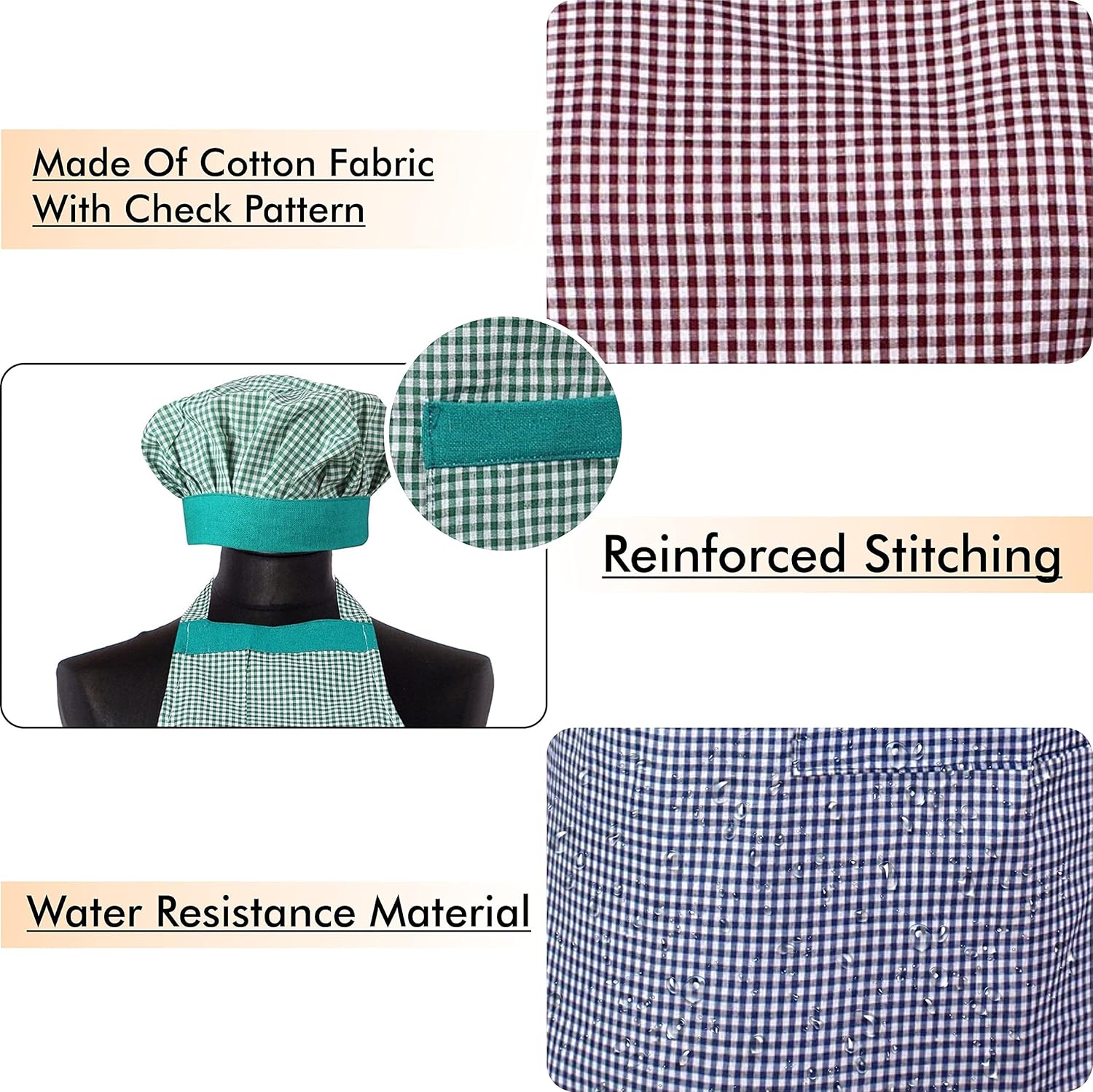Content : Set of 3 Kitchen Apron and Cap Combo with Front Side Pocket, Colour : Red, Green & Blue