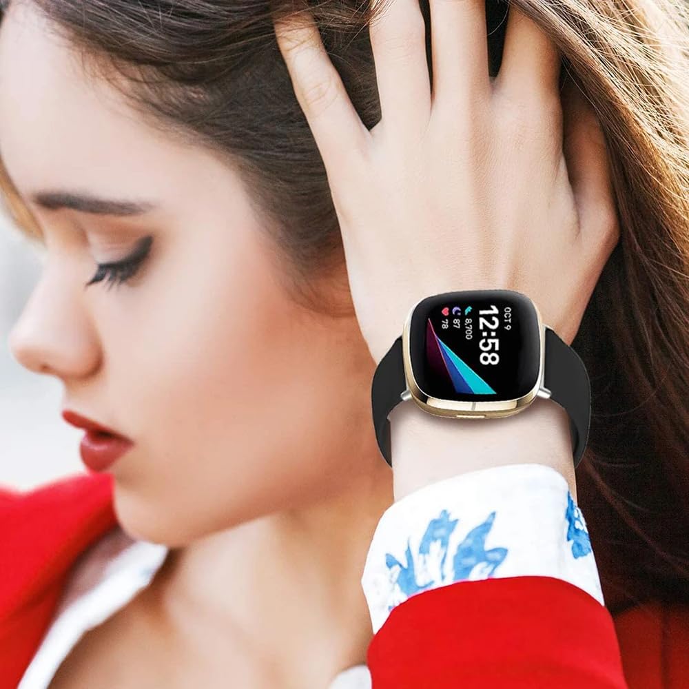 YODI Watch Band Compatible with Fitbit Versa 4/ Fit bit Versa 3/ Fitbit Sense/Sense 2 Band, Soft Replacement Silicone Wristband for Women Flexible Waterproof Sport Watch Strap for Men Large